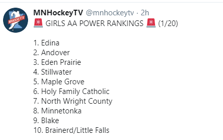 I saw the MNHockey.TV rankings on Twitter today. Here they are: